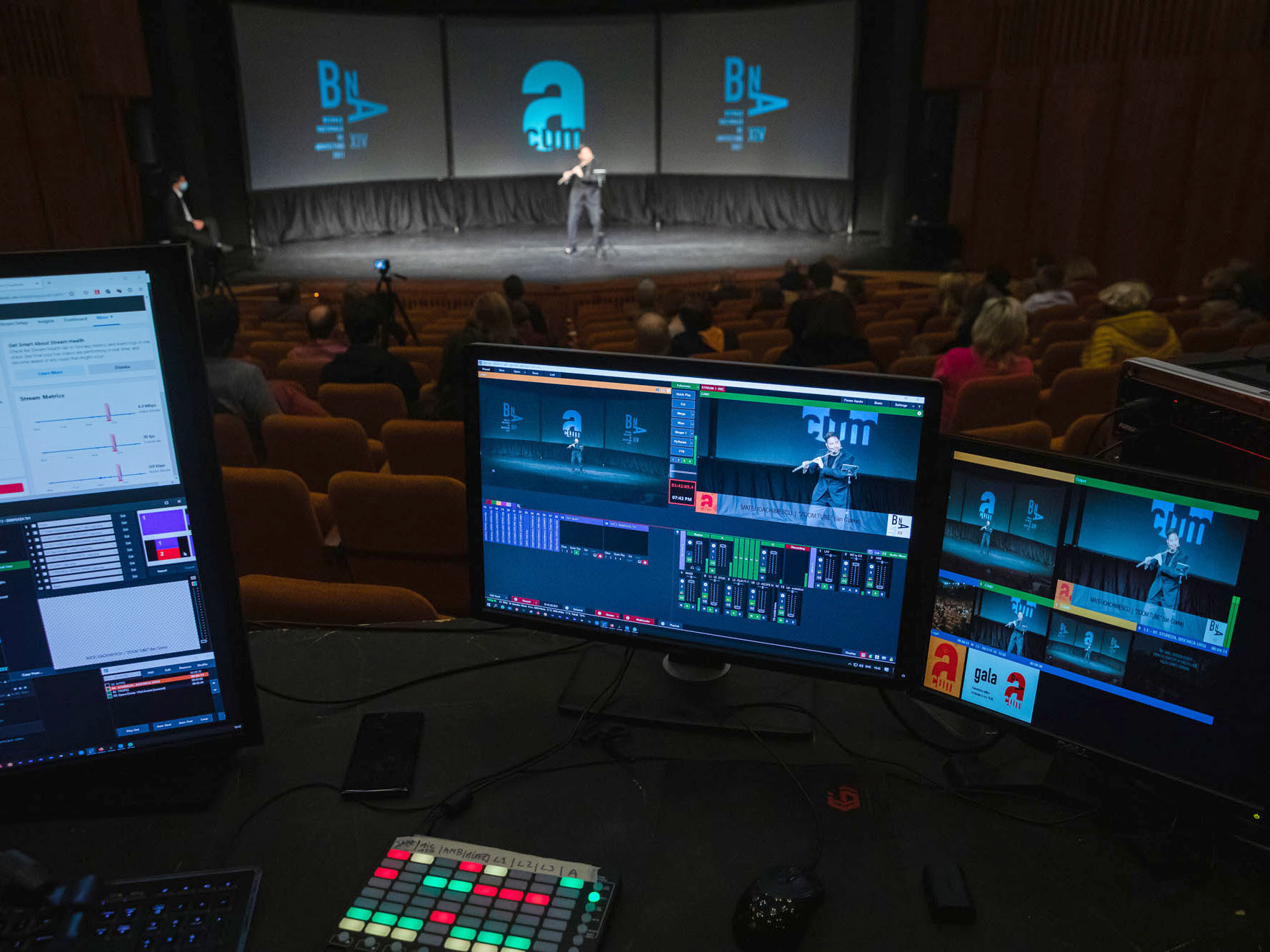 Când ești speaker ești filmat din mai multe unghiuri, dar îți e simplu să identifici la ce cameră să te uiți atunci când vorbești persoanelor care te urmăresc pe monitor, din alte locații. Cum? Un bec roșu se aprinde la camera care transmite LIVE în acel moment