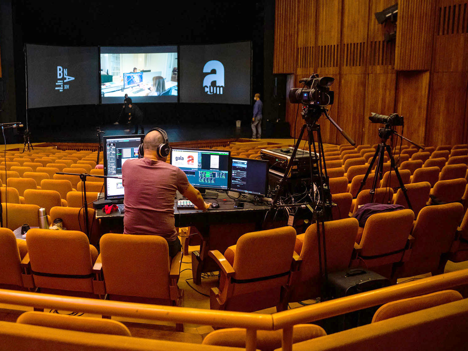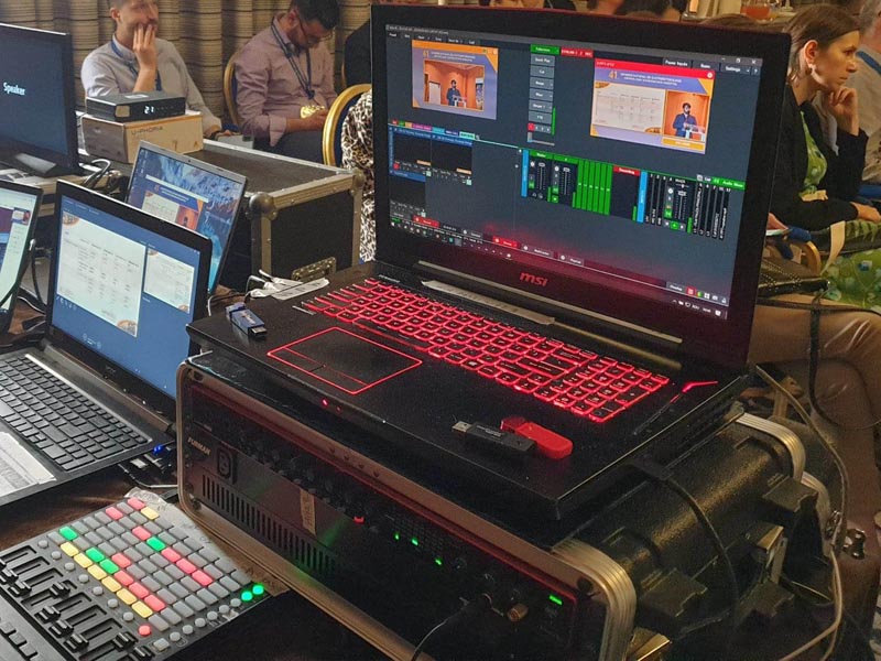 Echipa noastră responsabilă de regia tehnică trimite imagine pe ecranul din locația ta (videoproiecție/monitoare) cu prezentarea pe care o susții sau cu participanții la conferință aflați în alte locații și prezentările acestora